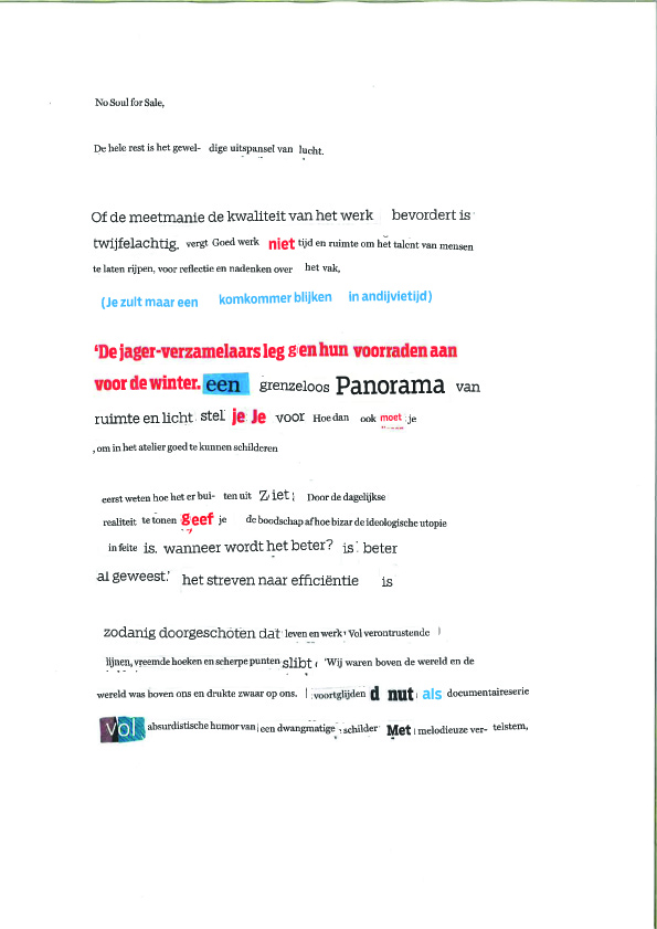 voor hoe dan ook moet je om in het atelier goed te kunnen